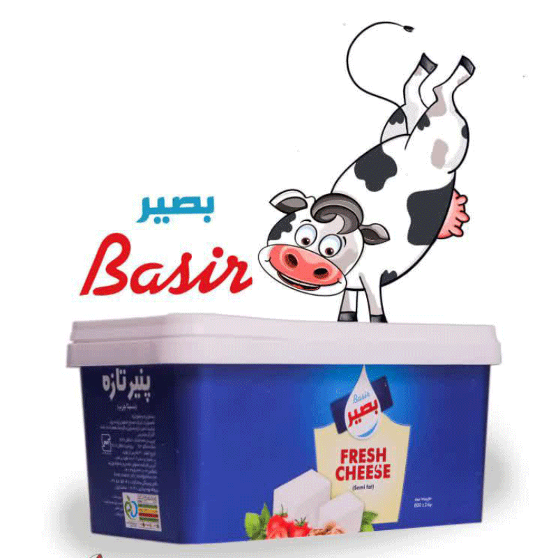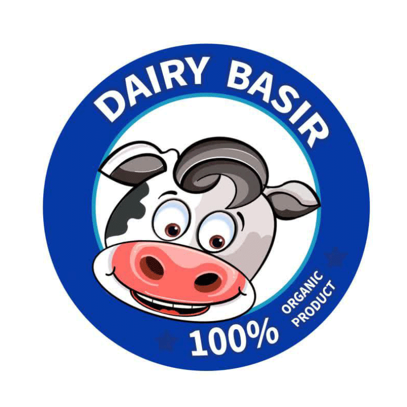 لوگوی لبنیات بصیر با طراحی فانتزی و رنگ‌بندی شاد، به‌خوبی حس تازگی و سلامت را منتقل می‌کند.